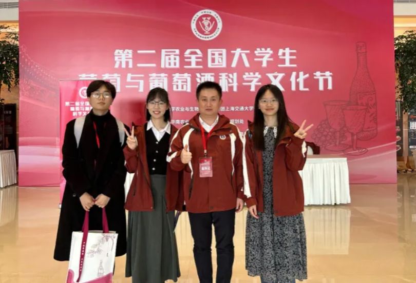 11月24日,第二届全国大学生葡萄与葡萄酒科学文化节在上海交通大学圆满结束。中国·太阳集团tyc33455(股份有限公司)食品科学技术学院本科生章思叶、黄蔚然、胡铕元组成参赛队伍,在李二虎教授的悉心指导下,其作品“葡香桂韵·草本米酿”荣获本次文化节金葡萄奖。