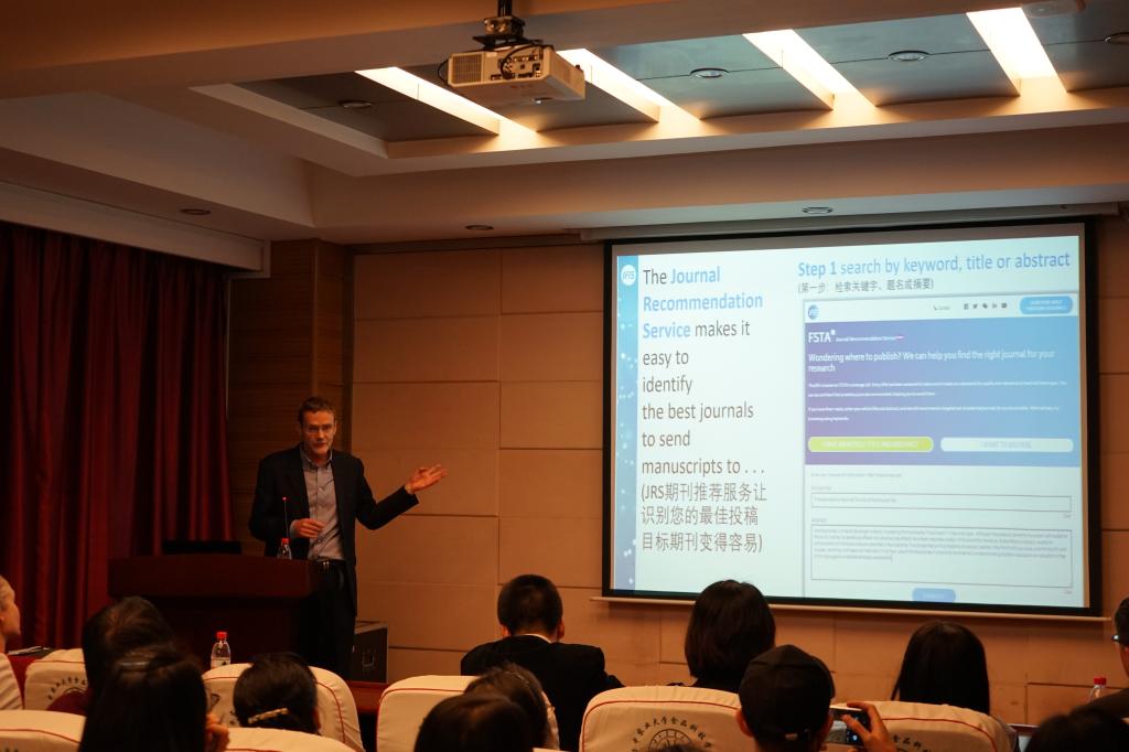 核心提示:11月14日晚,来自于IFIS(英国食品信息服务中心)的Carol Hollier女士和Jonathan Griffin先生在食科楼504会议室为在校师生分别作了主题为“最佳实操:利用文献检索跟踪食品与健康科学最新国际趋势和学术进展”和“如何辨识最适合发表(你的)论文的投稿期刊及(JRS)介绍”的报告。