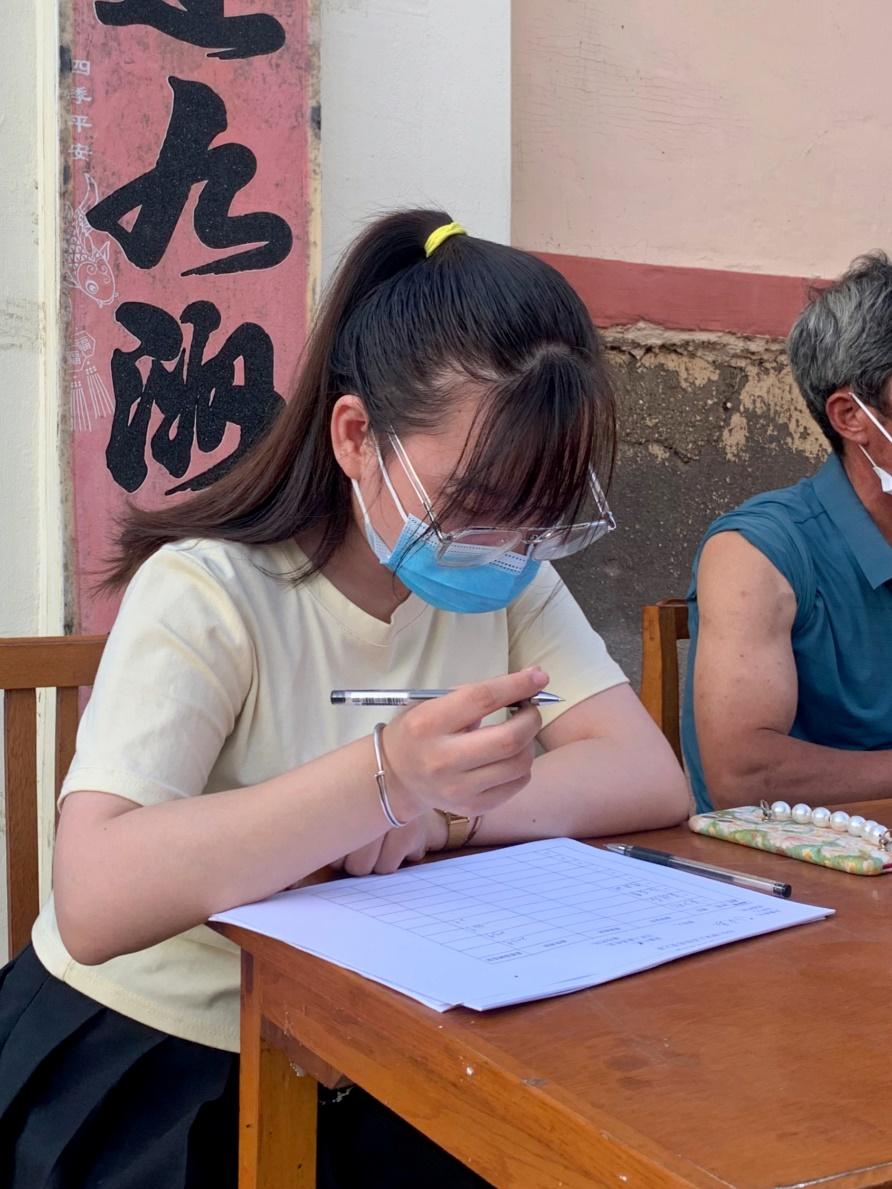 八月上旬,正值暑期,为了保障全市人民的生命健康安全,医护人员们夜以继日的进行核酸检测。吴彤彤主动报名,并被安排在社区采样点处帮助核酸检测人员进行信息登记。虽是艳阳高照,登记工作有时因为老人的口齿不清或者声音嘈杂增加难度,但看到医务人员穿着密不透风的防护服依然坚守工作岗位,就坚定了吴彤彤认真工作的决心。在登记工作结束之后,吴彤彤与社区工作人员始终保持联系并表示,如果后期需要信息录入或者其他能帮上忙的地方,她可以随时前往
