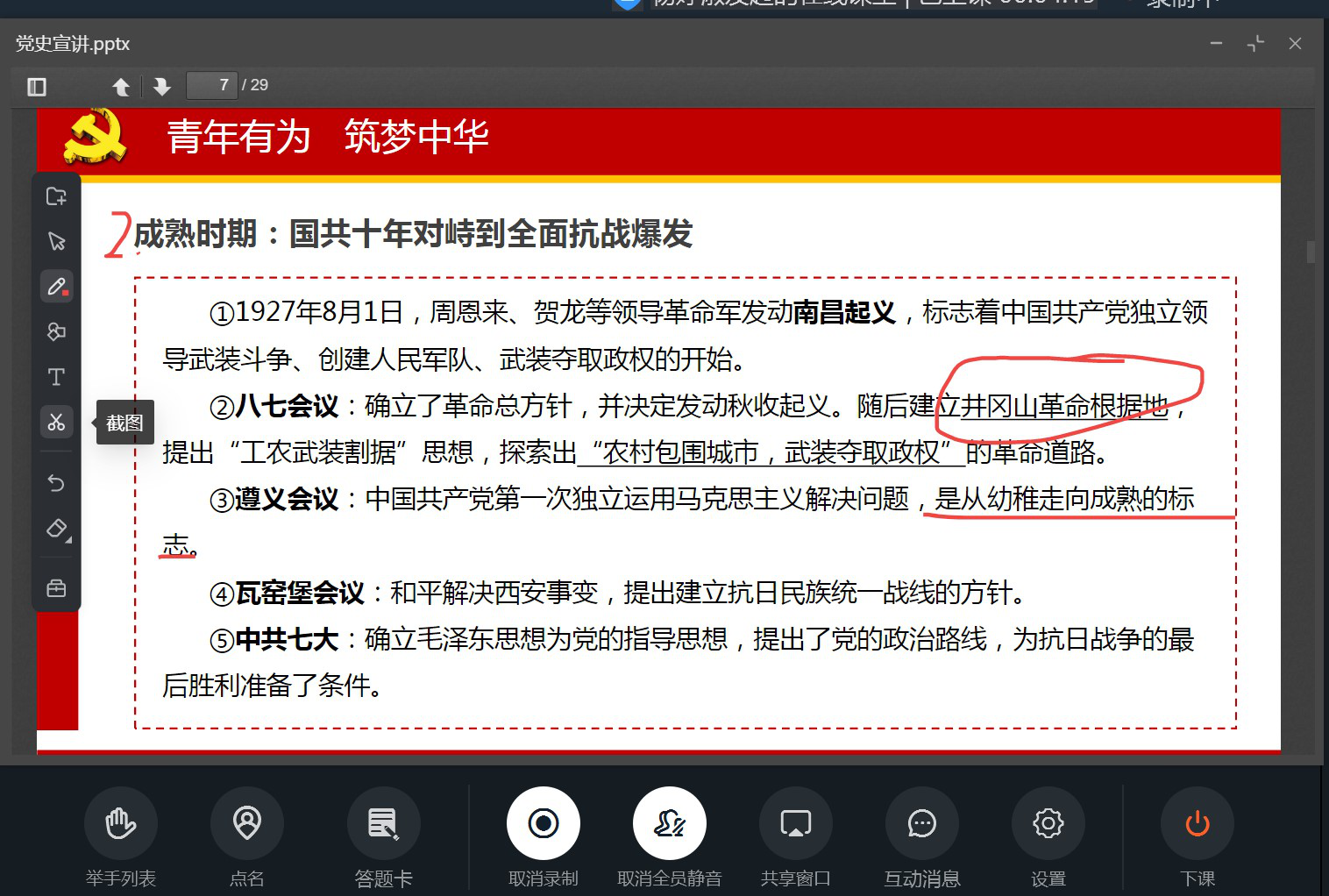 点击:一切向前走,都不能忘记走过的路;走得再远、走到再光辉的未来,也不能忘记走过的过去,不能忘记为什么出发。在中国共产党成立一百周年之际,安全学院本科第二党支部利用暑期时间,组建了党史宣讲小组,通过讲党史,丰富同学们的精神生活,让大家充分认识到学党史的重要性,变“要我学”为“我要学”,将其当作一种习惯和追求。