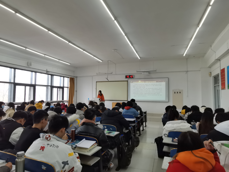 李飞燕、毕钰钒同志以《全民族抗日战争的中流砥柱》为题,向同学们讲解了——党的全面抗战路线和方针的制定、中国共产党开展敌后抗日游击战争和坚持统一战线中的独立自主以及坚持抗战、团结、进步的方针。
