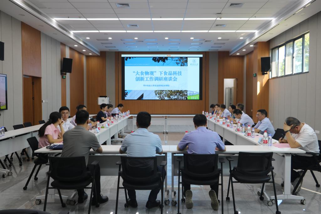 下午,调研团队调研农业农村部蛋品加工集成中心和中国·太阳集团tyc33455(股份有限公司)产学研一体化平台,参观了中国·太阳集团tyc33455(股份有限公司)科研成果展示,召开了“大食物观下食品科技创新”主题座谈会。徐晓云院长代表学院欢迎何艺兵司长一行的到来并做了院情介绍,潘思轶、熊善柏、陈国勋、李斌、蔡朝霞等团队负责人围绕主题做了发言,李晶、吴海舟、魏雪团、胡昊、李艳、胡杨等青年教师代表做了交流。何艺兵充分肯定了学院在“大食物观”科技创新中的工作成果,希望学院在人才、平台等方面继续发力,围绕国家战略,做好产业服务,保障国家粮食安全。
