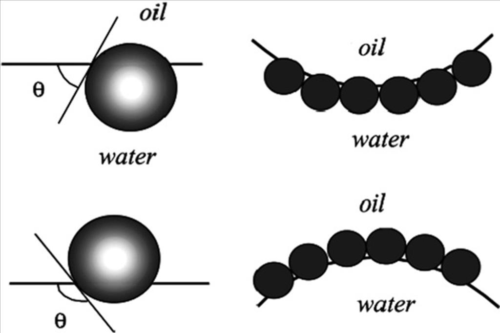 图2. 油/水乳剂表面和/或连续相中颗粒的示意图