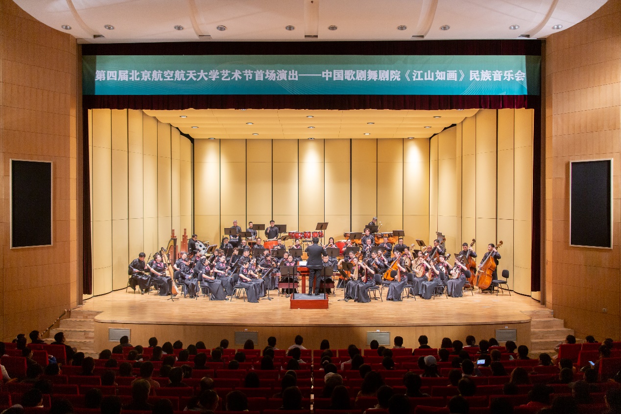 为深入实施美育浸润行动,持续开展“高雅艺术进校园”,4月1日晚,第四届北航艺术节首场演出在晨兴音乐厅隆重上演,中国歌剧舞剧院民族乐团为师生们带来一场题为《江山如画》的民族音乐会。