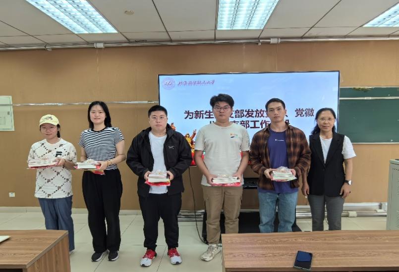 新学期工作部署结束后,王书记为新生党支部发放党旗、党徽及支部工作手册。亲手将党旗和党徽交给了本硕博新生党支部书记,这一仪式不仅是对新生力量的热烈欢迎,更是对全体党支部书记的激励和鞭策。