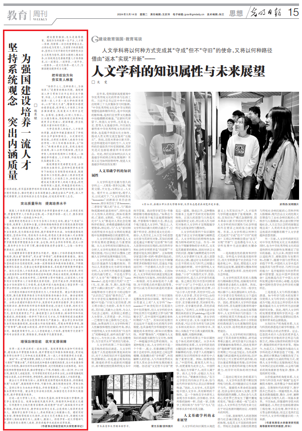 《光明日报》刊发党委书记赵长禄署名文章:坚持系统观念 突出内涵质量 为强国建设培养一流人才