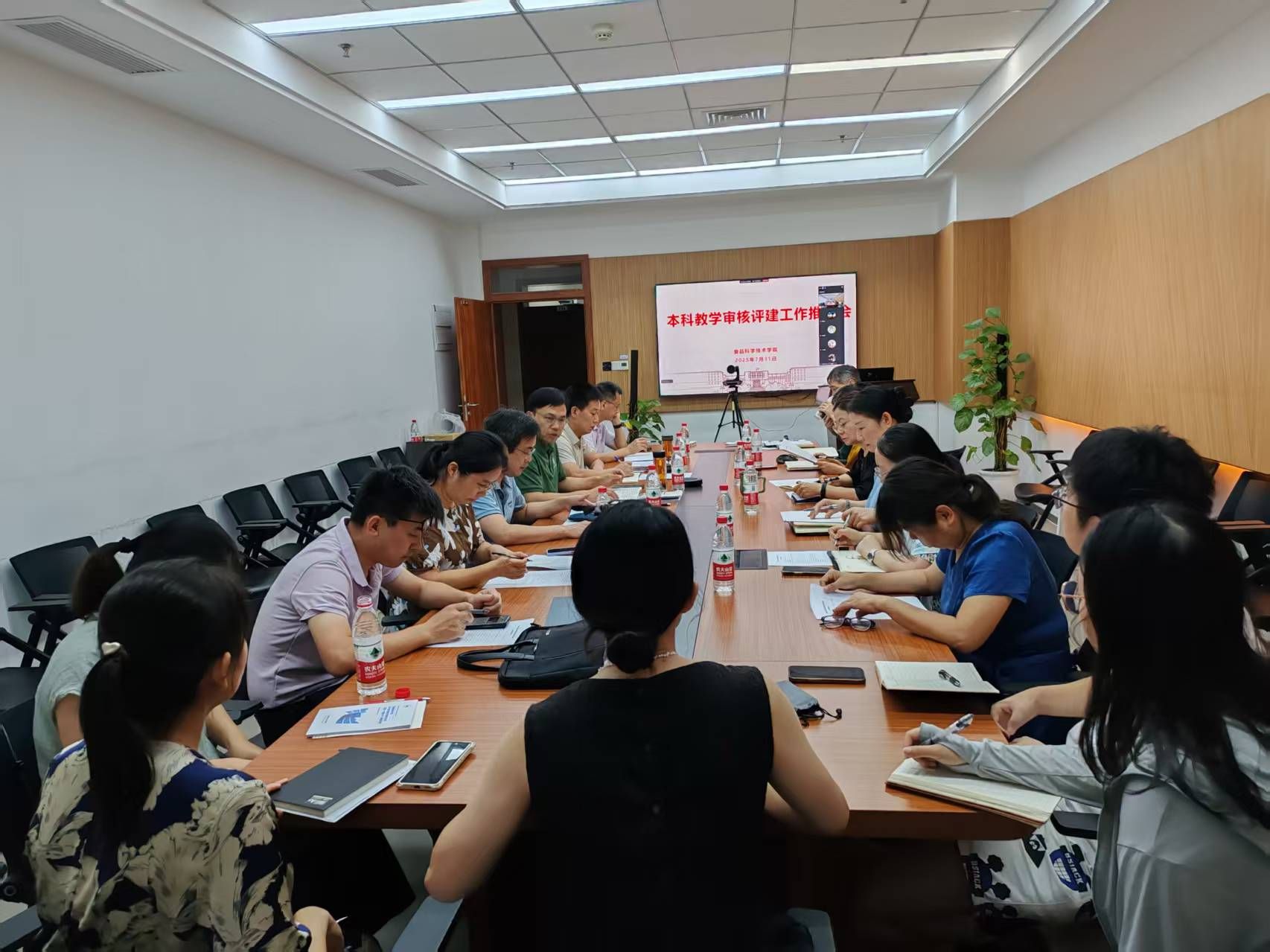 7月31日上午,食品科学技术学院在食科楼225会议室召开本科教育教学审核评估评建工作推进会。学院党委书记镇志勇主持会议,学院班子成员、教工党支部书记、系主任、副主任、教研室主任、中心实验室主任、辅导员、教务员等40位教师通过线上线下方式参加会议。