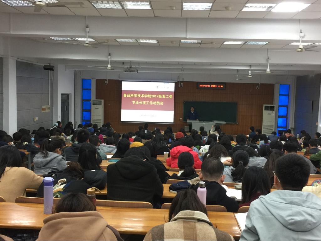 11月21日中午,食品科学技术学院在三教A105教室召开2017级食工类专业分流工作动员会,学院副院长张柱红、副书记向异之、食品科学与工程专业负责人熊善柏教授、食品质量与安全专业负责人郭爱玲教授及学院全体2017级本科生参会,会议由2017级辅导员胡小娱主持。