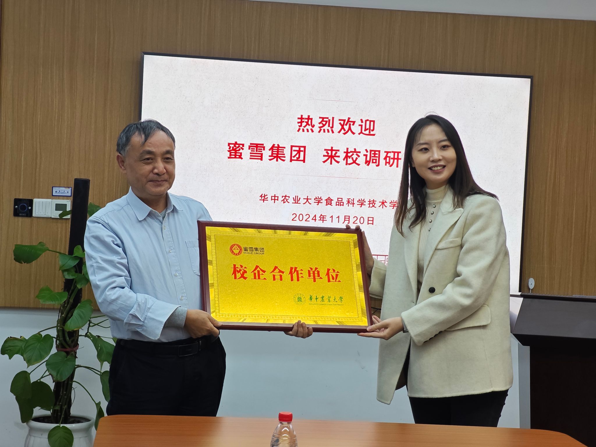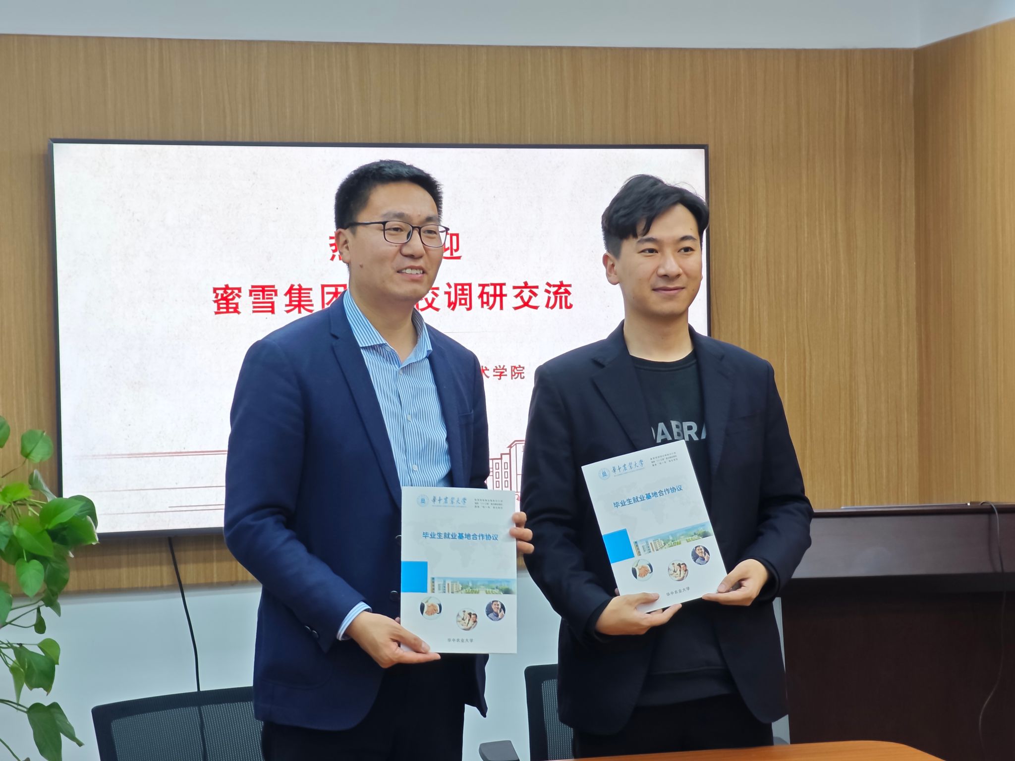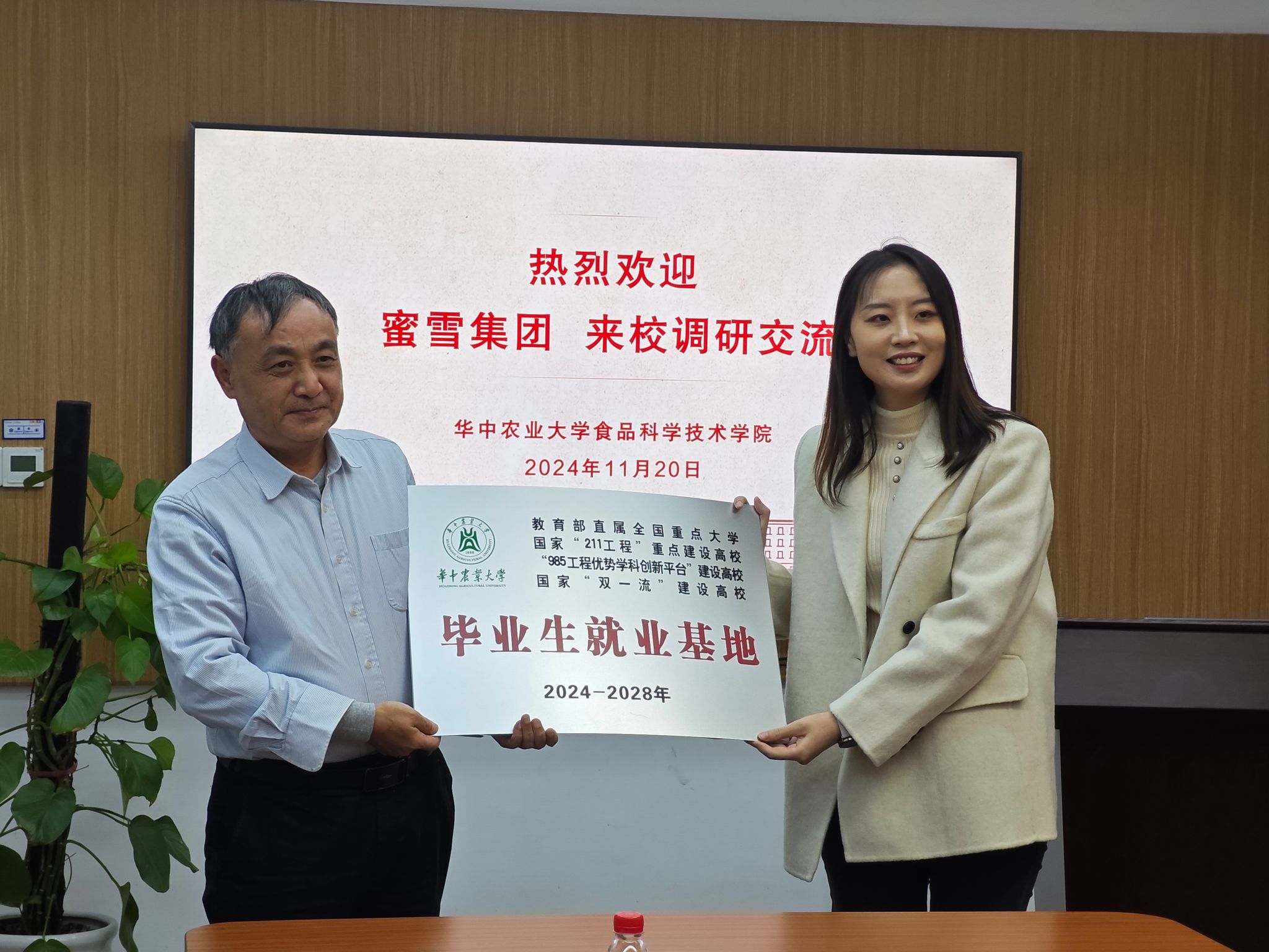 本次签订建立校企就业基地,旨在建立稳定的人才引进机制,帮助校企双方培养能够解决产业实际问题的人才,帮助学生提前了解职场、了解食品行业。会上,学院党委副书记吕瑞凯与蜜雪集团校招负责人陈冠龙签订就业基地协议书,党委书记杨铁贵向蜜雪集团人才供应部负责人吴菲菲授牌。