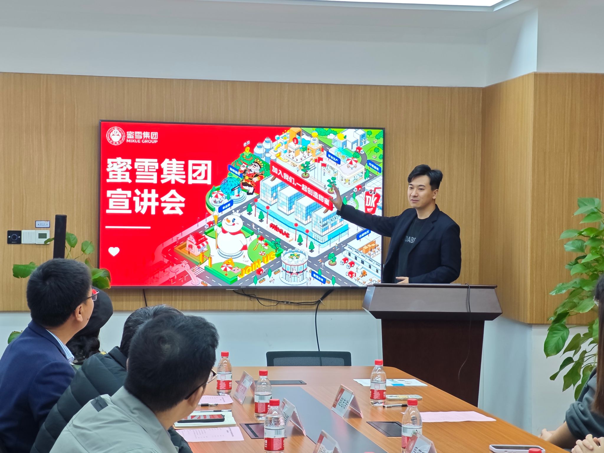 蜜雪集团校招组负责人陈冠龙介绍了蜜雪集团的创办历史、企业文化、社会责任、发展前景等内容。陈冠龙表示,蜜雪集团始终遵循“真人真心真产品,不走捷径不骗人”的核心价值观,为广大消费者奉上高质平价的美味。同时,蜜雪集团及下属企业也一直积极响应国家号召,在全国范围内积极开展校企就业合作。