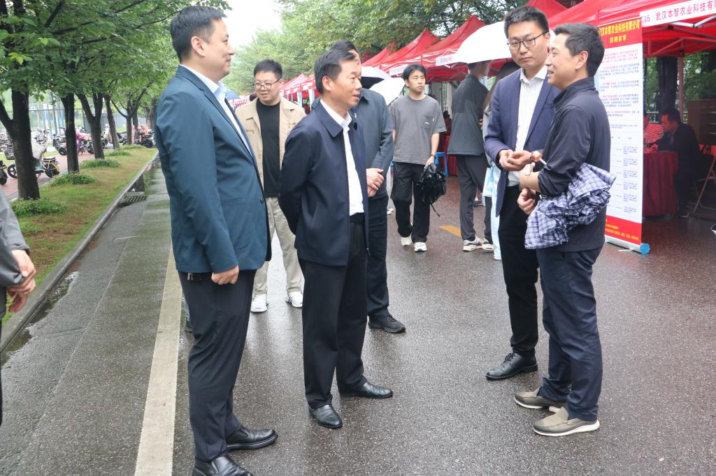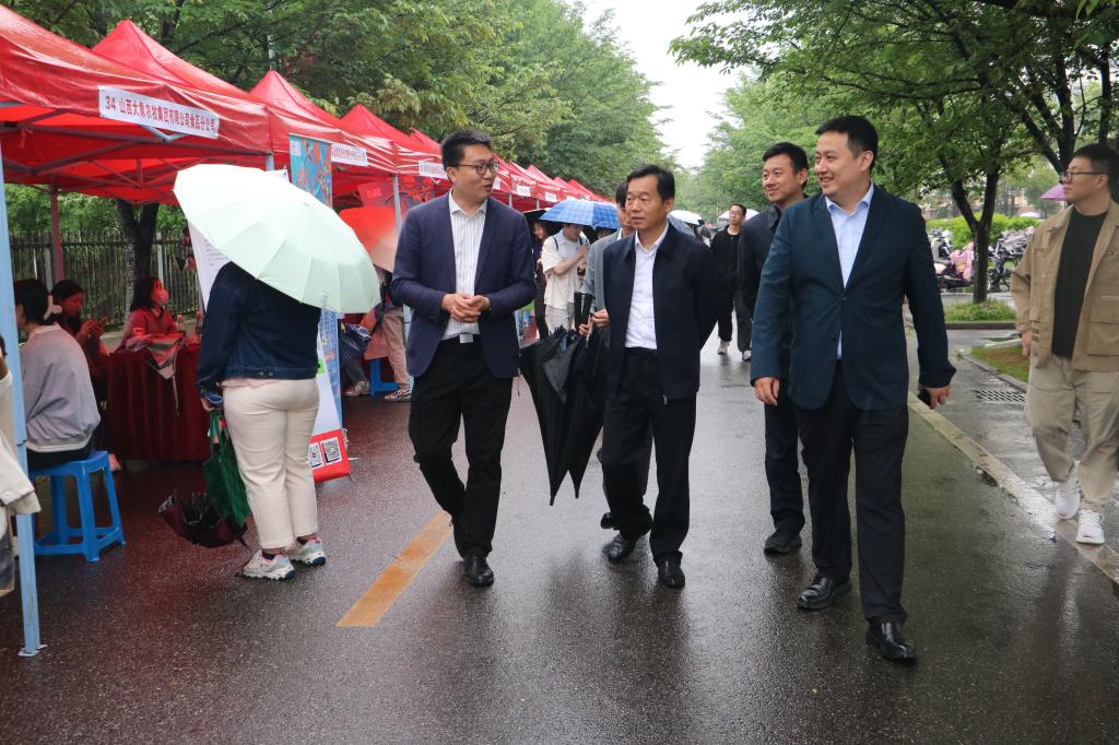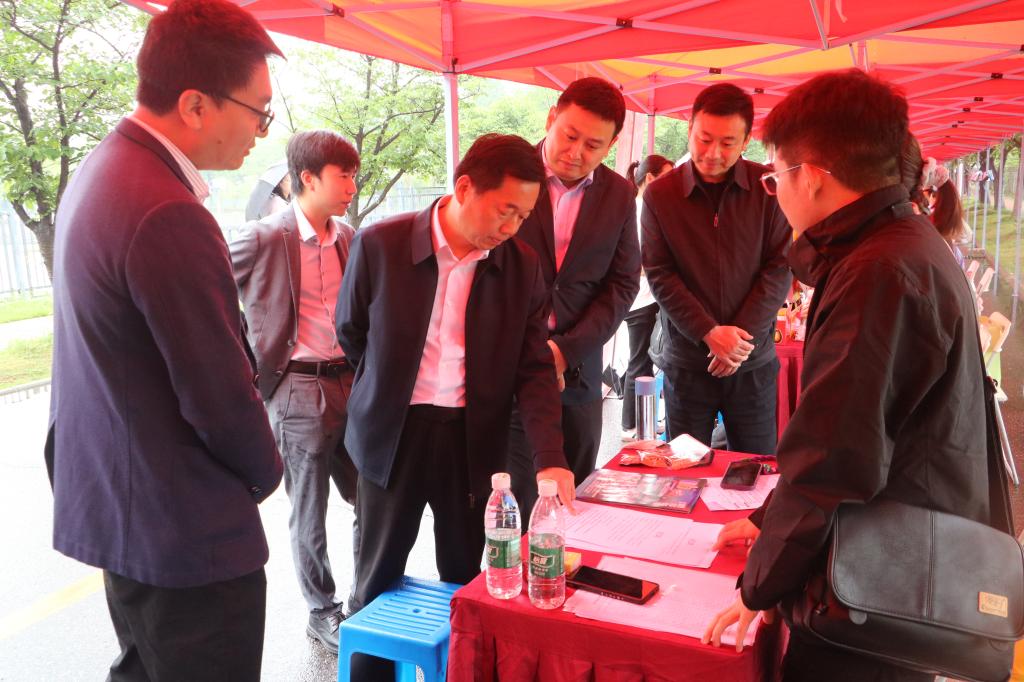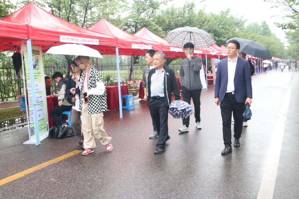 东西湖区人社局党组书记、局长姚树明及副局长叶志文等来到招聘会现场,食品科学技术学院杨书记和吕书记等陪同,了解企业用人需求、招聘岗位的设置数量、毕业生的求职意愿和签约情况,鼓励毕业生理性规划职业生涯,积极了解求职企业投递简历。