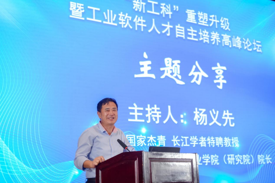 首届国家杰出青年基金获得者、首届教育部长江学者奖励计划特聘教授,河南工程学院工业软件产业学院(研究院)院长杨义先教授主持大会交流。深圳市讯方技术股份有限公司北区经理杜红奎,艾普工华科技(武汉)有限公司总经理助理、技术总监周小青,华为云高校生态运营总监宁利智等围绕“国产工业软件企业人才诉求”进行了分享交流。深圳信息职业技术学院智能制造学院院长、工业软件创新中心负责人刘明俊,河南工程学院副校长张铟,清华大学软件学院副研究员、大数据系统软件国家工程研究中心副主任刘英博等围绕“工业软件人才自主培养破局探索与实践”进行了主题分享。锐捷网络股份有限公司智慧教学产品经理李伟、北京智启蓝墨信息技术有限公司董事长兼 CEO、蓝墨智能云教学平台总设计师靳新、超星教育研究院院长、超星泛雅集团执行总裁秦波涛,河南鼎盛电子技术有限公司副总经理于斌等围绕“技术创新支撑新工科专业建设”进行了探讨。