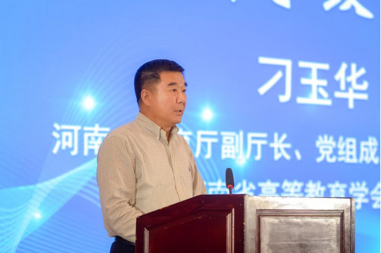 刁玉华在致辞中代表省教育厅对本次论坛召开表示祝贺,向与会领导及代表介绍了河南省高等教育发展现状。他深刻分析了我省“新工科”建设面临的使命任务,客观总结了我省推进“新工科”建设的初步成效,对下一步我省深入推进新工科建设、深化产教融合科教融汇、加快构建高质量高等教育体系提出了革新办学理念、强化服务导向、创新育人模式、更新教学内容、变革课堂方式、聚焦关键突破等六个方面的要求。他强调,高校要聚焦国家战略和经济社会发展急需,特别是以工业软件为代表的“卡脖子”关键领域,发挥学科专业优势特色,推动产学研协同,瞄准工业软件关键核心技术开展科学研究,努力提升科学研究和人才培养的服务针对性、创新靶向性,推动我国工业软件产业创新发展,示范带动“新工科”重塑升级整体行动。他希望各高校要以此次论坛为契机,多学习、多交流、多借鉴,以高度的时代责任感,进一步凝练办学特色,创新“新工科”教育方式手段,办好一批“新工科”专业,培养一批创新创业能力和跨界整合能力强的“新工科”人才,为建设教育强省作出积极贡献。