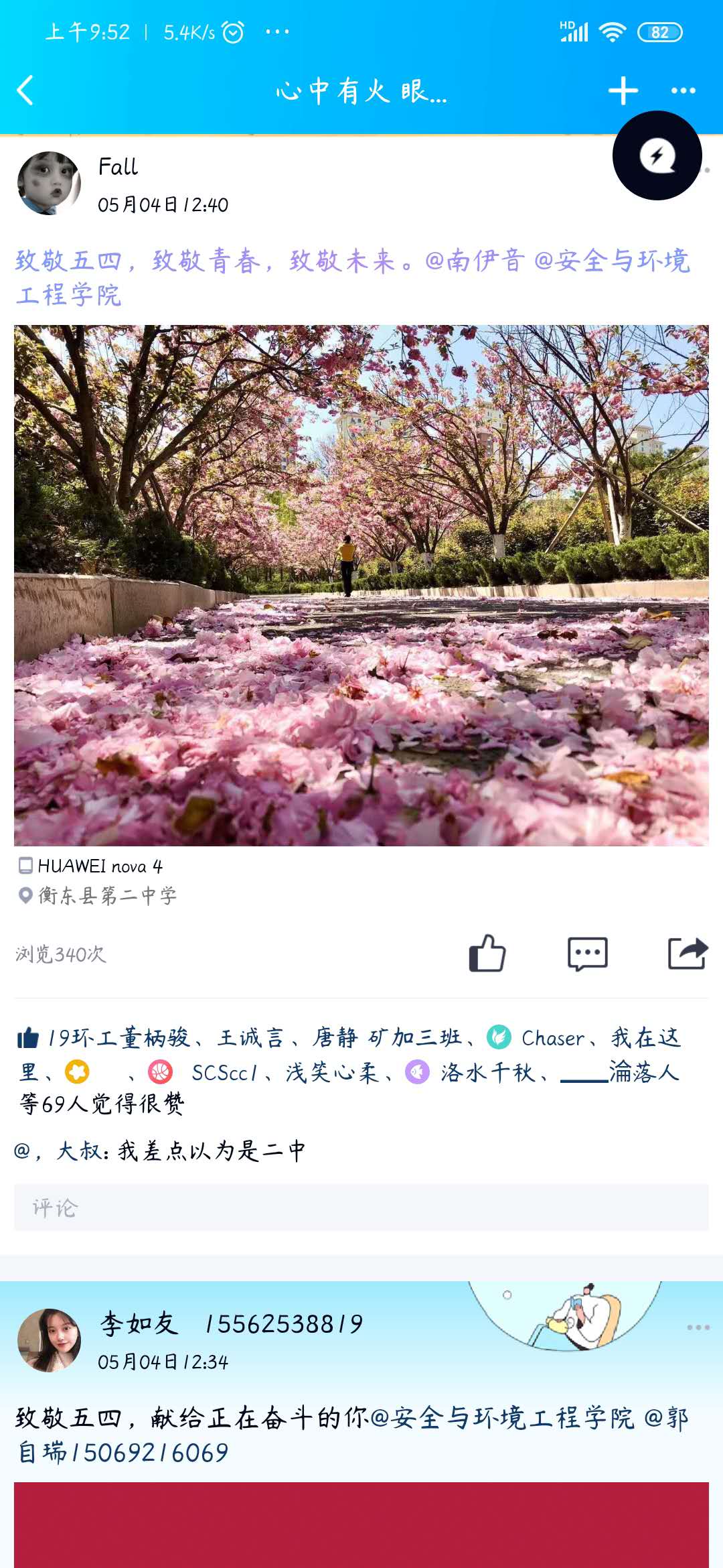 “五四精神,传承有我”文化创意作品征集活动激发了同学们的爱国情怀,学院学子踊跃报名参加,投稿形式多种多样,殊途同归只为传承五四精神,同学们或执笔作赋抒发赤子之心,或以快门定格记录美好瞬间,亦或以每一帧的热爱诠释青春力量;“接力五四精神,致敬战‘疫’青春”线上打卡活动则以空间打卡的形式,加入话题讨论,和朋友们分享小长假里有趣的事情与丰富精彩的生活,向战疫中艰苦奋斗的英雄致敬,传递一份青春美好,传递爱与希望;同时,学院组织学生以短视频的方式,接力五四精神,以积极进取的精神和昂扬的青春之姿,争做有为好青年。至此安全学子已整装待发,誓要成为国家栋梁人才,向祖国和人民交出一份满意的答卷!