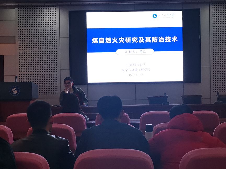 点击:3月16日,由山东科技大学研究生会学术部主办,安全与环境工程学院承办的第三周研究生论坛在J4-319教室成功举办。主讲人为2020级安全科学与工程硕士董浩,主讲题目为《煤自燃火灾研究及其防治技术》。