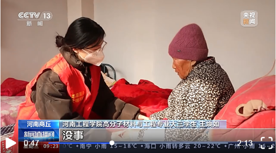 1月11日,央视新闻频道以《河南睢县:寒假返乡大学生志愿者投身基层医疗点》为题,刊播了我校材料工程学院学子投身基层防疫一线志愿服务,守护村内孤寡老人和弱势群体的事迹。