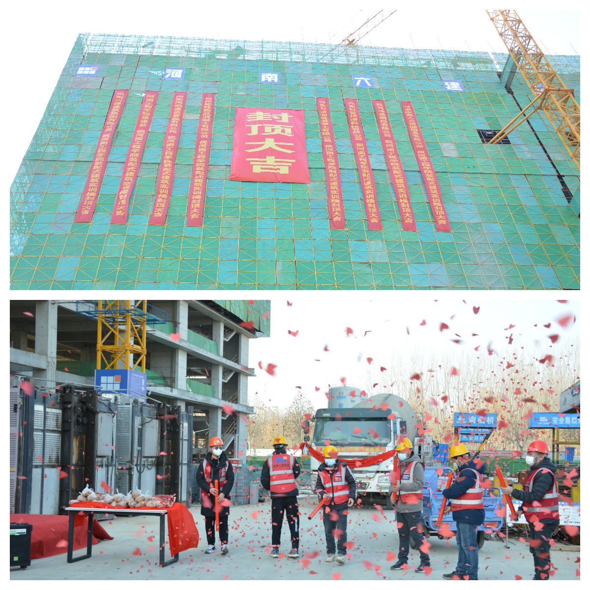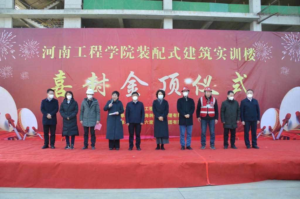 1月10日上午继西区4号实验楼项目全面封顶之后,南区装配式建筑实训楼项目也迎来了主体结构正式封顶。校党委书记刘永涛、校长李利英、副校长张铟、河南海纳建设管理有限公司何方杰经理、河南六建建筑集团有限公司副总经理孙海军及几位部门负责同志出席封顶仪式。封顶仪式由张铟主持。