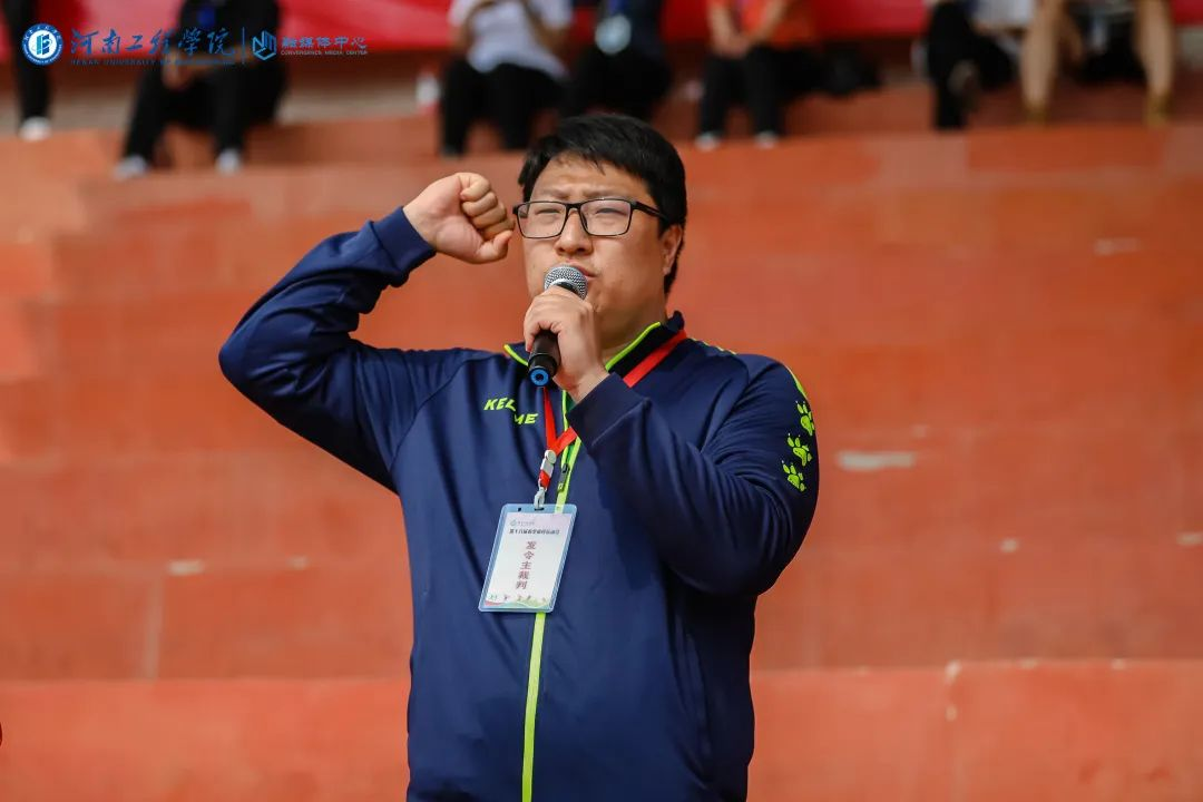 校党委副书记袁静波郑重宣布:河南工程学院第十六届春季田径运动会开幕!