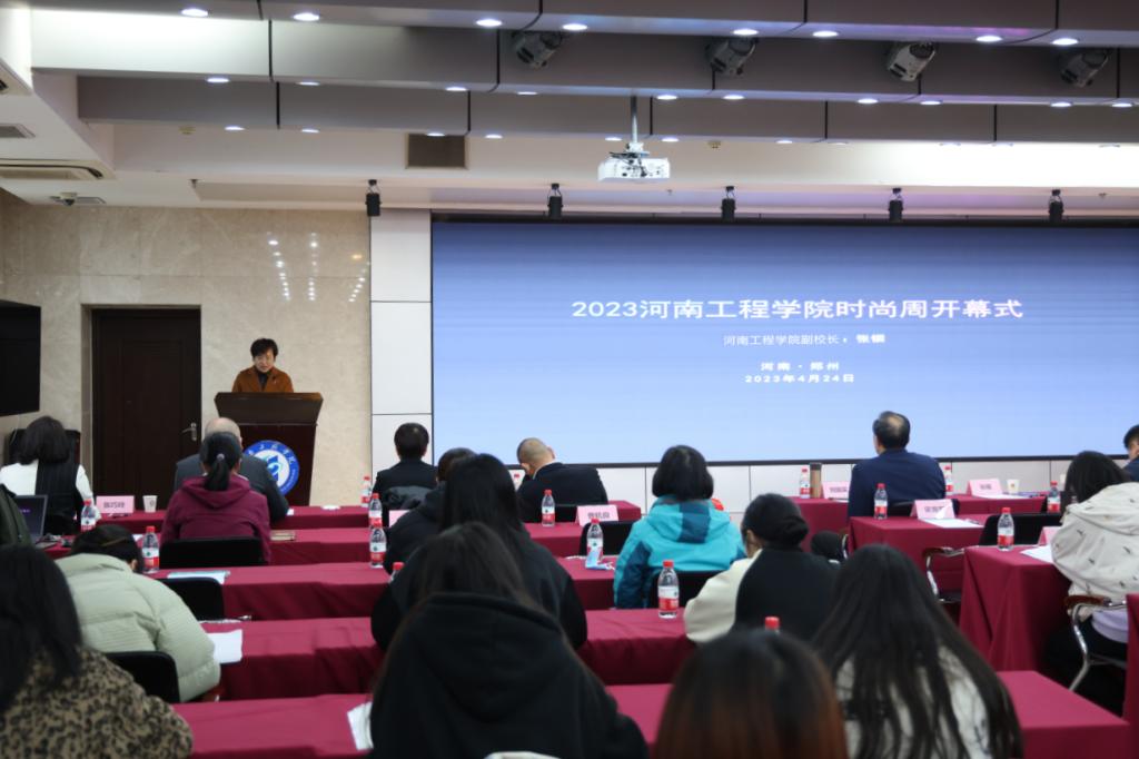 时尚科技融合发展,跨界创新永无止境,4月24日上午,2023河南工程学院时尚周在河南工程学院综合楼一楼报告厅盛大开幕。河南工程学院副校长张铟、纪委书记李德耀,校内各部门负责人及校友企业代表出席此次开幕式。