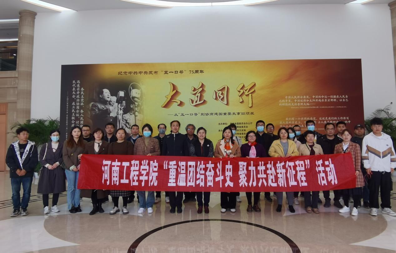 4月25日下午,我校组织全校统战委员,民主党派、无党派人士、知联会、留联会代表参观了《大道同行》河南巡展,共同纪念中共中央发布“五一口号”75周年,一起重温了党史、新中国史和多党合作历史。