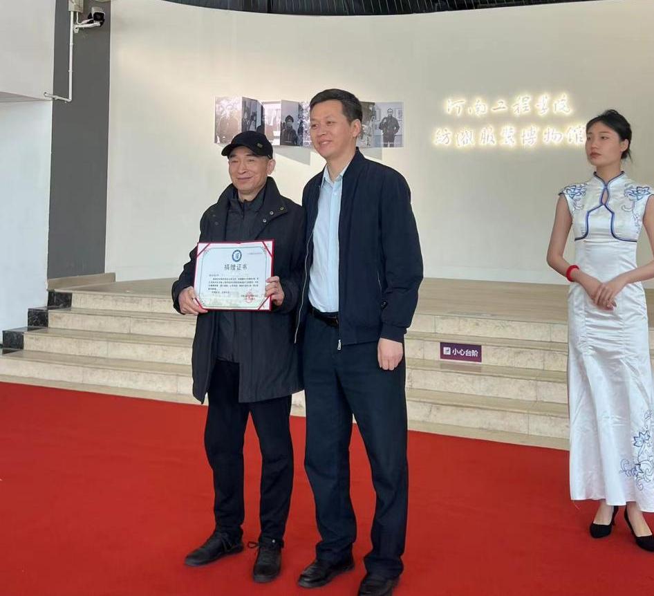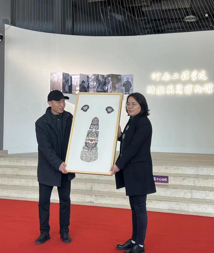 捐赠仪式上,刘沙予老师将自己收藏的马面裙一件,云肩配饰刺绣品两件,苗族背搭四件,共7件藏品捐赠给了纺织服装博物馆,我校服装学院院长张巧玲上台接受捐赠。创新创业学院院长、河南工程学院校友工作办公室主任刘晓乐为刘沙予老师颁发捐赠证书。