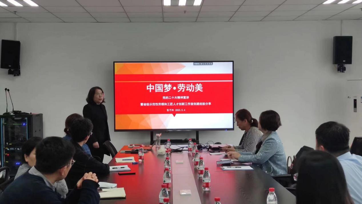 为推动党的二十大精神宣讲活动持续深入开展,充分发挥劳模创新工作室的引领作用,提升我校劳模创新工作室建设水平,校工会于5月4日下午在南校区9号教学楼B513室开展了“中国梦·劳动美”党的二十大精神宣讲暨省级示范性劳模和工匠人才创新工作室创建分享活动。校工会副主席卞卡、各分工会干部代表和已挂牌校级劳模创新工作室的成员等40多名老师参加了活动。