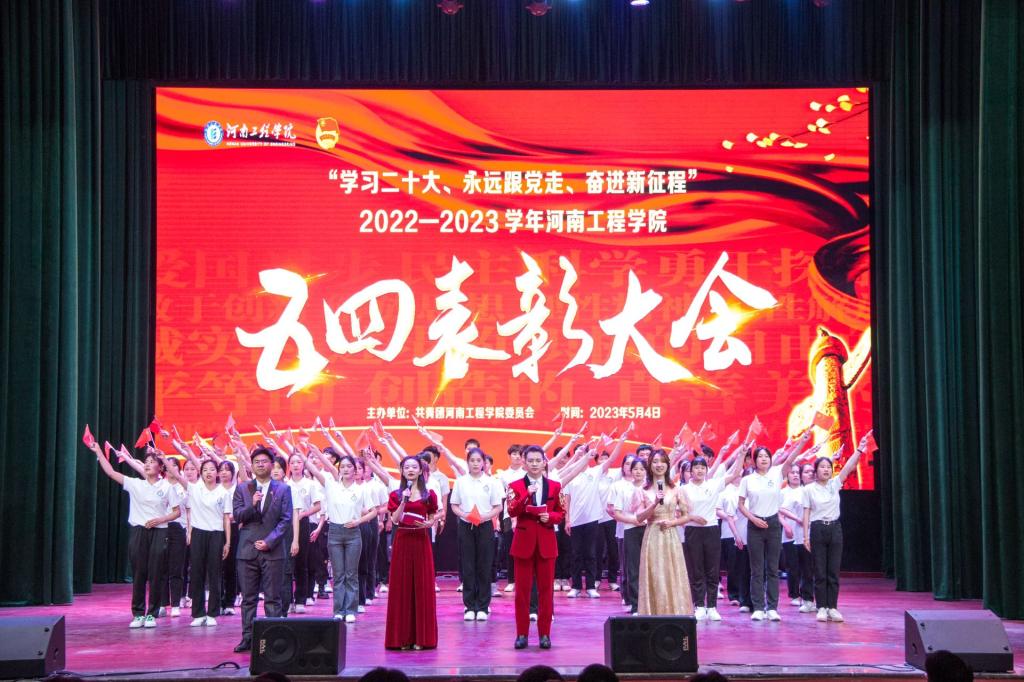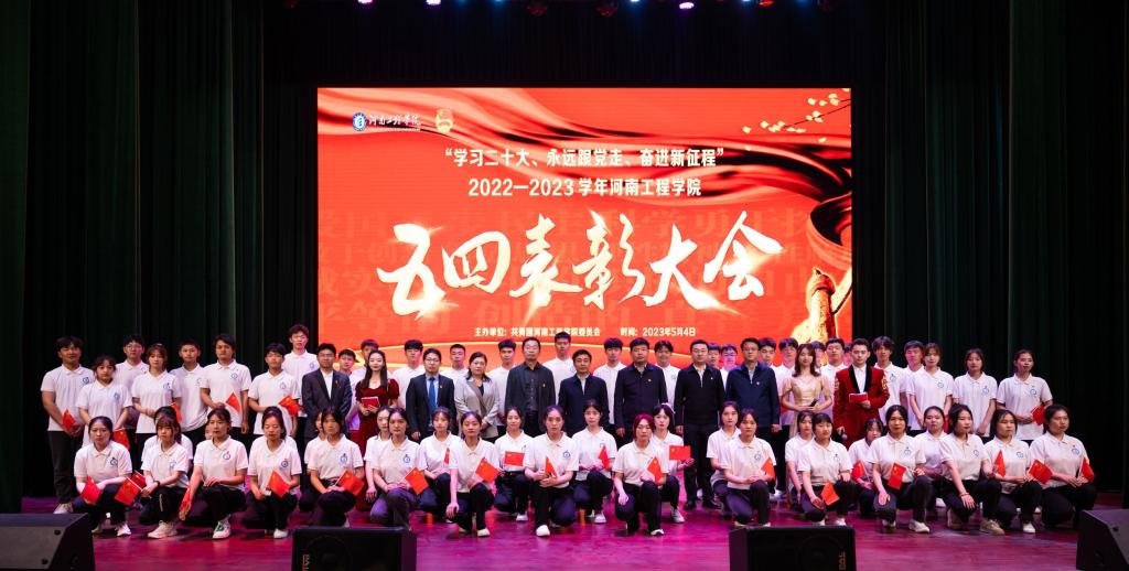 大会在庄严肃穆的国歌中拉开帷幕。会上袁静波宣读了《共青团河南省委关于表扬河南省五四红旗 团委(团支部)、河南省优秀共青团员、河南省优秀共青团干部的决定》和《共青团河南工程学院关于表彰2022-2023 学年优秀共青团员、优秀共青团干部、五四红旗团委(团支部)、青年大学习优秀学习单位、优秀新媒体个人和杨靖宇标兵的决定》,五四红旗团委代表徐荣敏老师、杨靖宇标兵代表石梦豪同学和优秀共青团学生干部代表郭豪杰作典型发言,与会领导为获表彰单位代表和个人进行了颁奖。