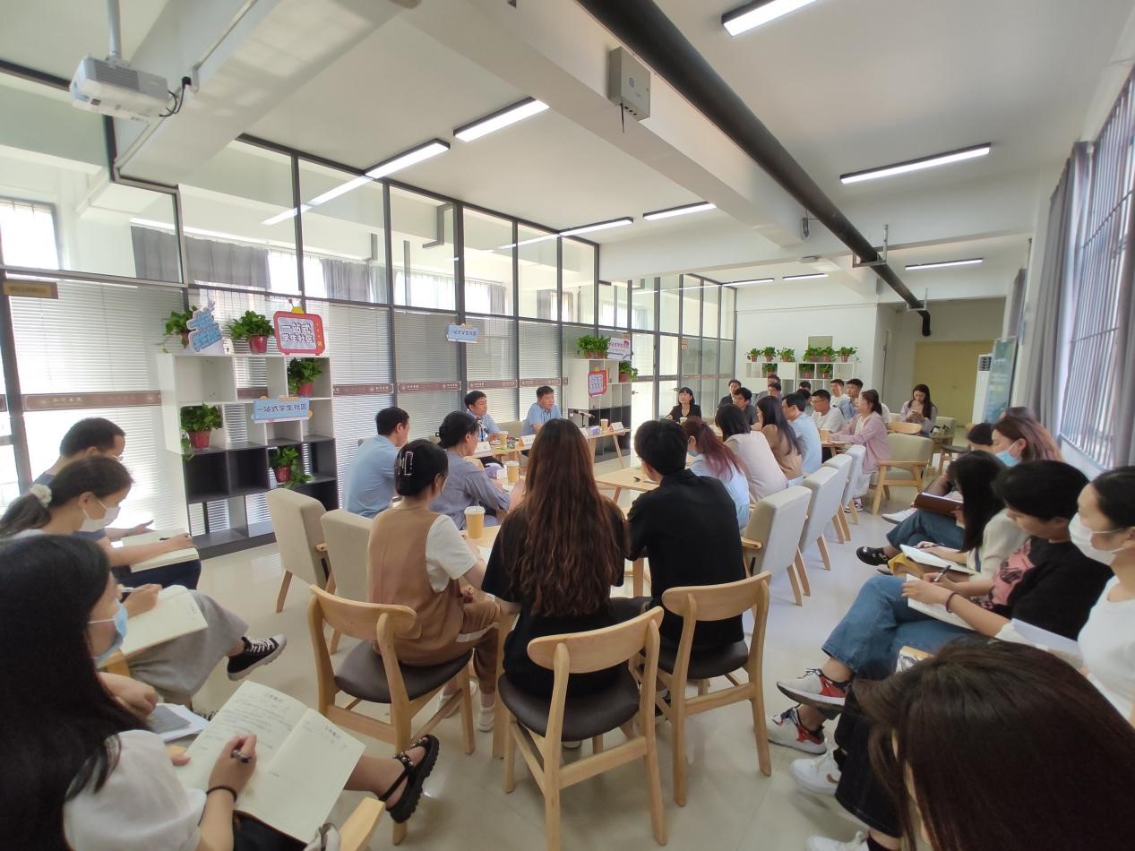 刘永涛认真听取了大家的发言,对一站式社区的工作进展和育人导师的辛勤工作表示充分肯定。他表示,全面推进一站式学生社区综合管理改革,营造“共学共居共乐共美”育人生态,是学校探索立德树人系统化落实机制,推进全员全程全方位育人的重要工作和关键抓手。下一步,要认真贯彻上级工作部署,学习借鉴先进经验,按照学校对一站式社区的顶层设计和总体要求,着力推进功能性党团组织在“全覆盖”基础上切实发挥功能作用,牢牢把握党建引领、思政育人、服务学生、文化建设、空间建设、品牌营造、生态建设等重点工作,走进学生、关爱学生、服务学生,真正打通“三全育人”最后一公里,通过持续推进一站式学生社区综合管理模式改革,努力将一站式学生社区建成学生党建前沿阵地、“三全育人”实践园地、平安校园样板高地。