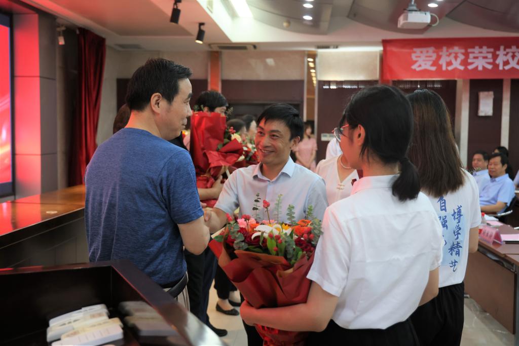 校领导为荣休教职工颁发荣休纪念章并鲜花合影。荣休教师代表、电气工程学院牛亚莉教授深情讲述了自己在河工任教39年来的峥嵘岁月,表达了对学校不舍的情怀与感谢,对教育事业和学生的留恋,以及对学校未来发展的美好祝福。