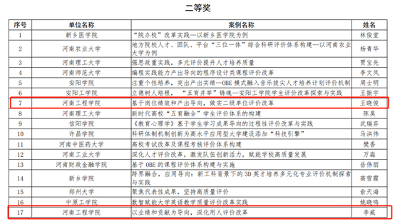 近日,在河南省教育厅办公室公布了2023年教育评价改革优秀案例,我校荣获一等奖1项,二等奖2项。
