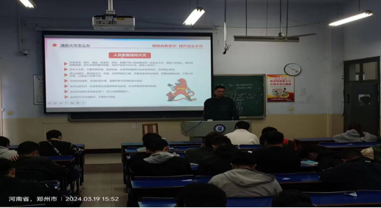 以主题班会、知识宣讲、应急演练等形式,提升同学们防灾减灾意识,提升应对能力。电气信息工程学院开展防震减灾主题班会,资源与安全工程学院开展消防知识专题讲座,环境与生物工程学院组织学生进行消防应急演练,校团委防灾减灾协会开展消防应急疏散演练。