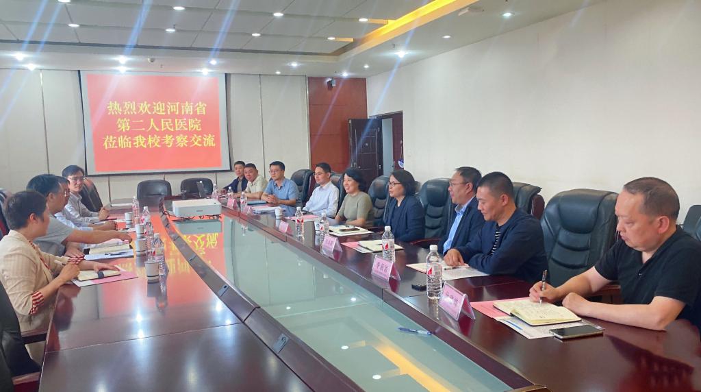 5月6日下午,河南省第二人民医院院长焦德强一行4人莅临我校进行考察交流。我校党委书记刘永涛、校长李利英与焦德强一行进行了工作会商,就双方今后的合作方向和模式进行了探讨。为了推动学院和医院的合作交流,副校长张巧玲在综合楼十楼会议室主持座谈会,后勤管理服务中心班子成员及相关科室负责人参加了交流座谈。