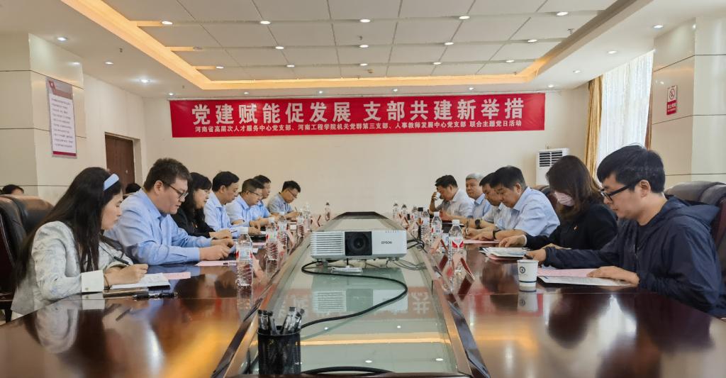 “书声琅琅,柳色堆烟,人间最美五月天”。5月15日上午,河南省高层次人才服务中心主任王高峰、党支部书记黄亚杰一行6人与我校党群三支部、人事教师发展中心党支部开展“党建赋能促发展 支部共建新举措”联合主题党日活动。活动座谈在综合楼十楼会议室举行,我校纪委书记李德耀、副校长李威及党群三支部、人事教师发展中心党支部负责人、高层次人才代表参加座谈。座谈会由人事处处长、党委教师工作部部长魏涛主持。