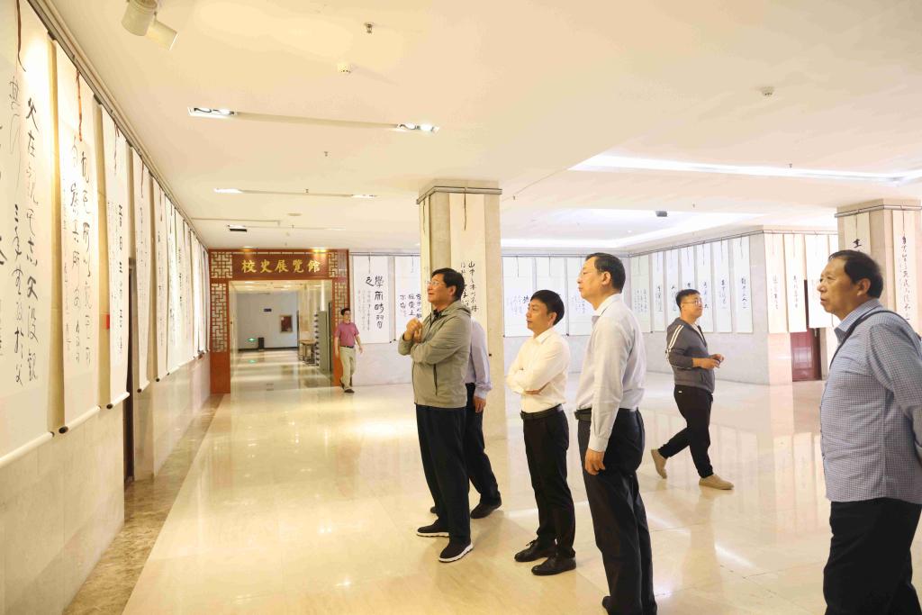 校党委副书记刘超代表学校对此次书法作品展开展表示热烈祝贺,他表示,此次展出为全体师生奉献了一场艺术盛宴。希望广大师生通过观展,深刻领悟爱国主义精神,厚植家国情怀,将中华民族天下为公、民为邦本、为政以德、革故鼎新等思想理念,自强不息、敬业乐群、扶危济困、孝老爱亲等传统美德,格物致知、知行合一等思想方法融入学校立德树人工作中,秉承河工精神,绘时代画卷,守教育初心,以实际行动为我校事业高质量发展贡献力量。
