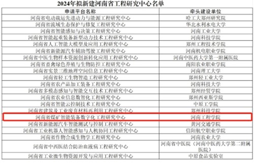 近日,河南省发展和改革委员会发布《2024年拟新建河南省工程研究中心的公示》,我校电气信息工程学院牵头建设的“河南省煤矿智能装备数字化工程研究中心”成功获批立项建设,使我校获批工程研究中心数量达到12个,省级科研平台总数量达到25个。标志着学校在科技体制改革、科技创新体系建设方面迈向一个新台阶。