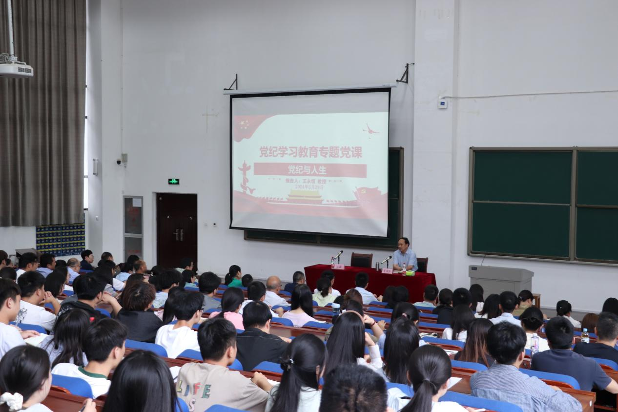 为切实增强党员对党规党纪的深刻理解,推动党纪学习教育深入有效开展,5月29日下午,副校长王永恒在九号楼国学大讲堂为联系学院党员师生讲授党纪学习教育专题党课,人文政法学院、理学院的党员师生共200余人参加了专题党课。专题党课由人文政法学院党委书记张莉主持。