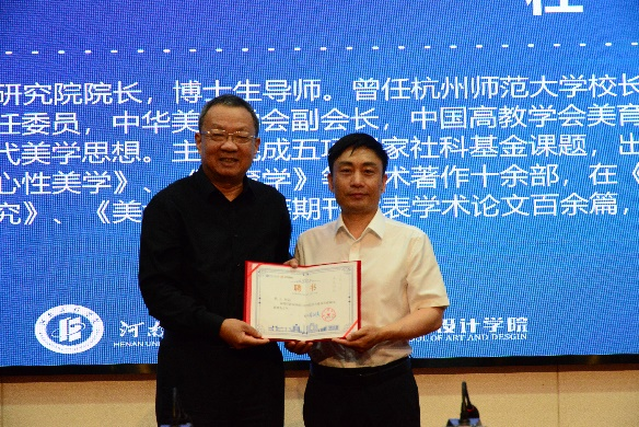 王庆斌教授以《“设计河南”背景下河南设计人才培养与学科建设思考》为主题,解读“设计河南”战略的缘起及建设、规划政策以及“设计河南”建设下的设计学科专业的建设与发展。