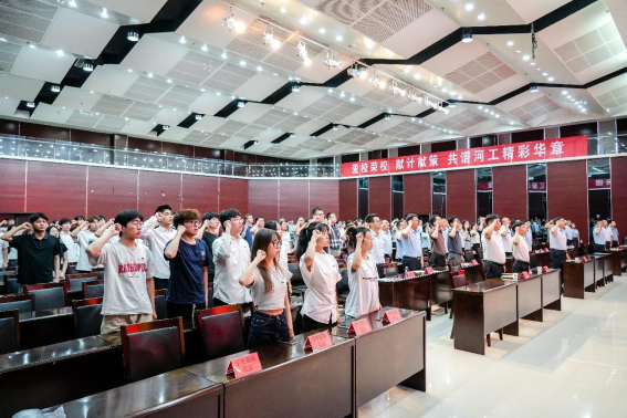 展演结束后,在校党委委员、党委组织部部长黄玉领誓下,新入党党员进行入党宣誓,老党员重温入党誓词。