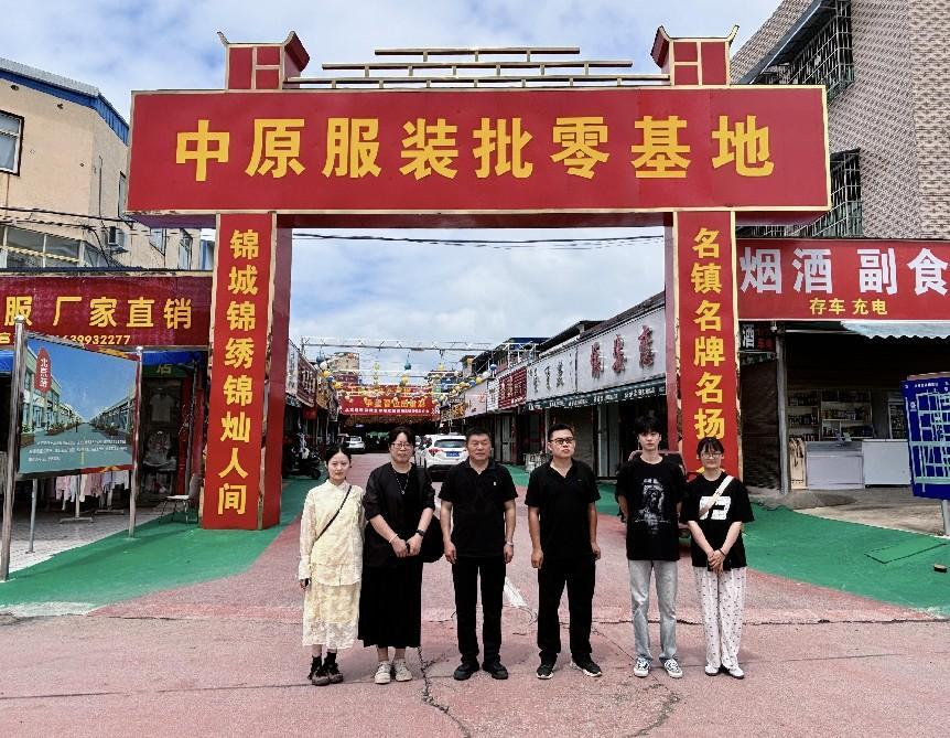 7 月 12 日,服装学院暑期“三下乡”社会实践团在党委副书记杨明霞及分团委书记巴若易、辅导员苏雪涵的带领下,深入穰东服装产业园区、服装企业及服装批发市场进行参观调研。穰东镇被誉为中原服装名城,作为知名的服装产业聚集地,拥有众多具有特色和潜力的服装企业。