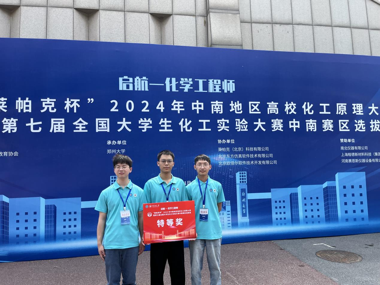 全国大学生化工实验大赛由教育部高等学校化工类专业教学指导委员会和中国化工教育协会于2017年联合发起,由中国化工教育协会主办,大赛主题为“启航-化学工程师”。于2023年入选“全国普通高校学科竞赛排行榜”,获得了中国高等教育学会的认可。全国大学生化工实验大赛旨在推动高等学校化工类专业的“新工科”建设,提高化工类专业核心课程教学质量,加强大学生综合素质与能力培养,提升教育服务化工行业发展的水平。大赛分为赛区竞赛和全国决赛。赛区分为东北、华北、西北、华东、中南、西南,通过赛区比赛选拔出优胜队伍进入全国决赛,此前在中南赛区比赛中,我校学子获得了赛区特等奖。