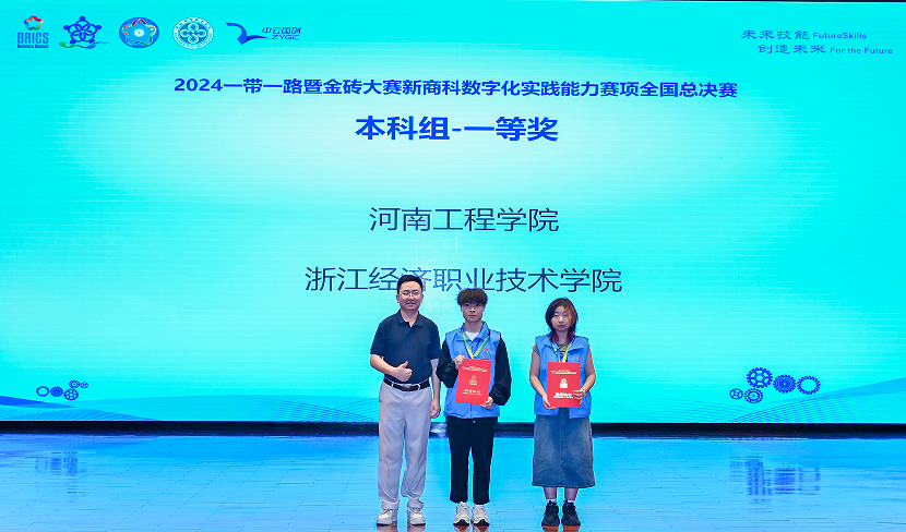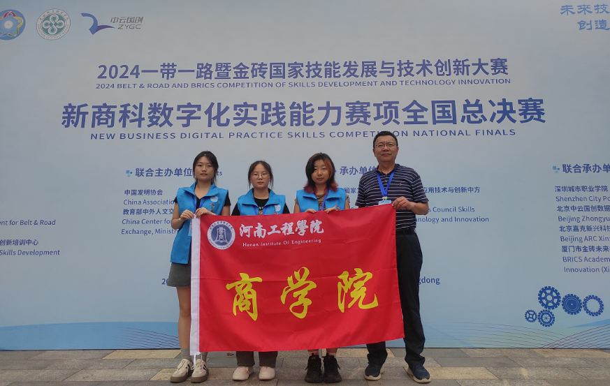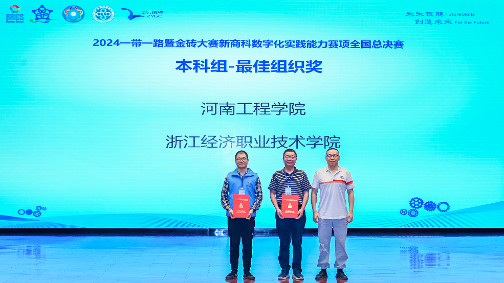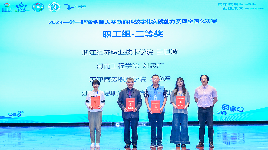 11月17日,2024“一带一路”暨金砖国家技能发展与技术创新大赛新商科数字化实践能力赛项全国总决赛落幕。我校商学院代表队以客观操作题和主观分析题双满分的成绩荣获本科组第一名,荣获金奖;刘忠广老师取得职工组总决赛第四名,荣获银奖,并获“优秀指导老师”称号;我校获得最佳组织奖。