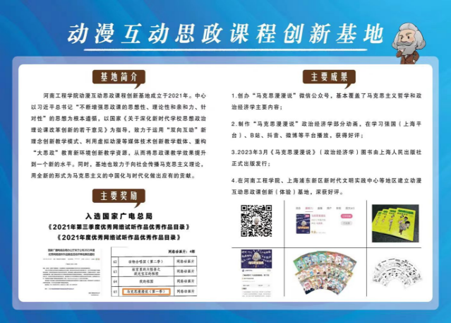 马克思主义学院高度重视思政课教师深耕理论教学、创新实践教学,支持师远志博士成立“马克思主义学院动漫互动思政课创新基地”,推荐申报注册马克思主义理论动漫公众号“马克思漫漫说”,立项思政课教育教学改革研究项目,在《马克思主义基本原理》课程中全面使用创作作品,为“马克思漫漫说”应用于立德树人全过程提供坚实保障。
