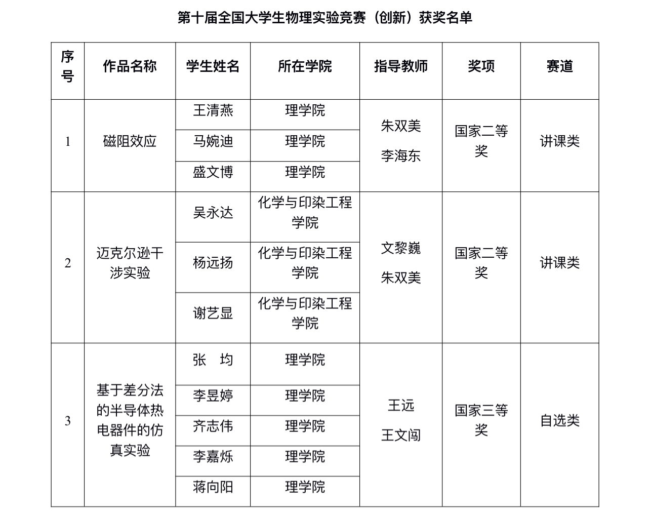学校高度重视学生创新能力培养,始终坚持“以赛促教、以赛促学、以赛促创”的竞赛理念。在创新创业学院的统筹组织和理学院具体实施下,教师指导团队和学生积极备战,经过资格审查、校赛选拔、模拟演练等环节,不断强化物理实验素养,最终取得可喜成果。我校自2022年参加该项赛事以来,累计获得国家一等奖2项,国家二等奖3项,国家三等奖2项。通过参加该项比赛,增强了学生对大学物理实验学习的积极性,推动了大学物理实验课程的教育教学改革,提升了学生科技创新能力,提高了人才培养质量。