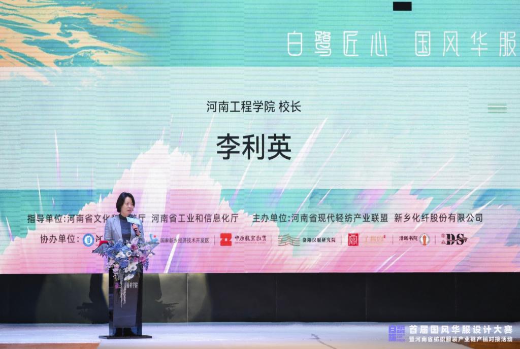 12月26日,由河南省文化和旅游厅、河南省工业和信息化厅指导,河南省现代轻纺产业联盟、新乡化纤股份有限公司主办,河南工程学院协办的白鹭杯·首届国风华服设计大赛决赛落下帷幕。河南省文化和旅游厅副厅长李延庆,河南省工业和信息化厅二级巡视员寇守峰,新郑市黄帝故里景区党工委书记、管委会主任王淑惠,新乡化纤股份有限公司总经理季玉栋,河南工程学院校长李利英,副校长张巧玲,以及各省辖市工业和信息化主管部门、纺织服装企业代表参会。大赛开幕式由河南省现代轻纺产业联盟副秘书长崔亚珍主持。