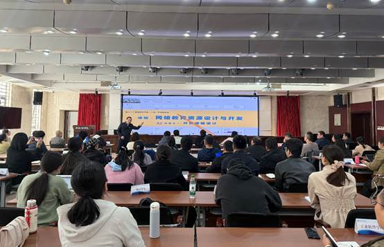 随后,吴军其教授以“高校教师AI能力提升策略”为题展开培训。他从AI时代背景下教育教学的新特点、新形式及其带来的新问题入手,分析当前教育的发展趋势,讲解人工智能的发展阶段及其在教育中的应用现状。通过案例展示,深入讲解人工智能技术在赋能教师专业发展、优化教学、促进科学学习、引领教育评价改革和提升教育智能管理等方面的作用,并介绍了多种智能教学平台和工具,帮助教师更好地应用AI技术。培训过程中,参训教师积极参与,互动频繁,现场气氛热烈。