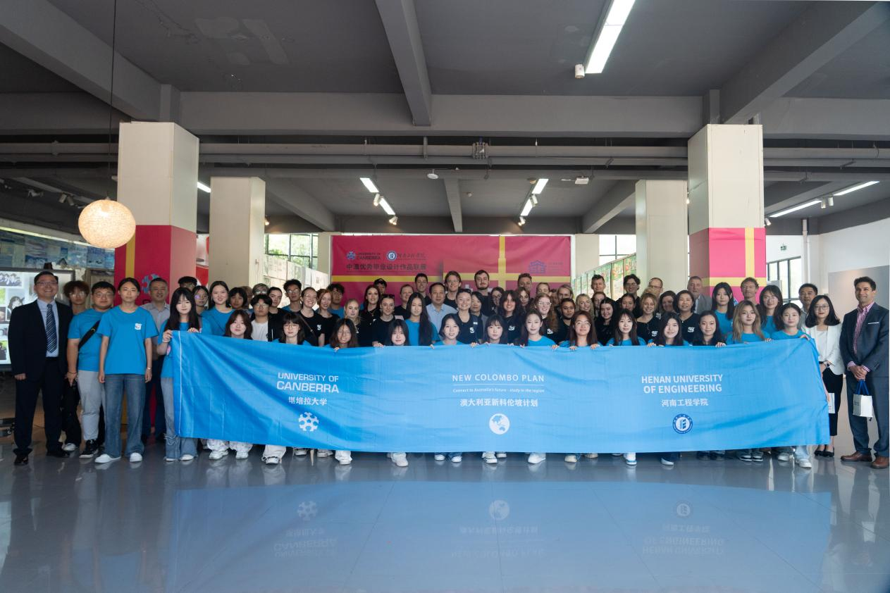 5月26日上午,堪培拉大学留学生团组欢迎仪式暨河南工程学院与堪培拉大学合作办学项目学生设计作品展在我校8号教学楼隆重举行。河南工程学院副校长王永恒、堪培拉大学北亚区负责人Ling Gao、留学生团组负责人Jayee、国际教育学院(国际合作交流处)领导班子及师生代表出席仪式。
