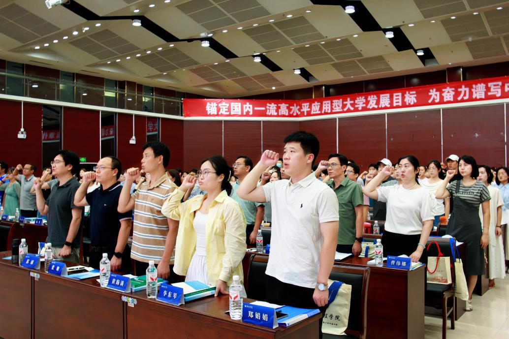 仪式上,学生工作部相关负责人宣读了《2025年暑期学工队伍能力提升培训方案》。随后,新入职辅导员代表发言,他表示,力争在今后的工作中惜训筑基,以归零心态汲育人智慧,以问题导向谋育人实效,以协同意识筑育人合力,以初心使命立育人信念。优秀辅导员代表在发言中分享了自己的切身感悟:辅导员工作是一场“以心育心”的修行,核心在于“爱”与“责任”;是一项“厚积薄发”的事业,关键在于“学”与“思”;是一个“协同育人”的枢纽,成功在于“合”与“融”。最后,全体辅导员共同宣读高校辅导员誓词。全体辅导员高举右手,目光如炬地庄严宣誓。他们以初心为灯,照亮学生前行之路;以使命为旗,引领青春奋斗征程,做学生成长路上最坚实的后盾!