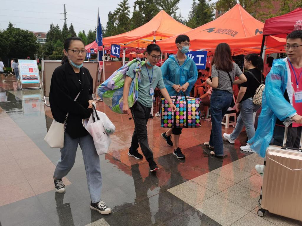 风吹雨打不缺岗,迎接新生不懈怠。”94日,安全学院迎新志愿者身披红绶带、胸挂工作证、手持学院标牌,冒雨开展迎接新生服务工作。