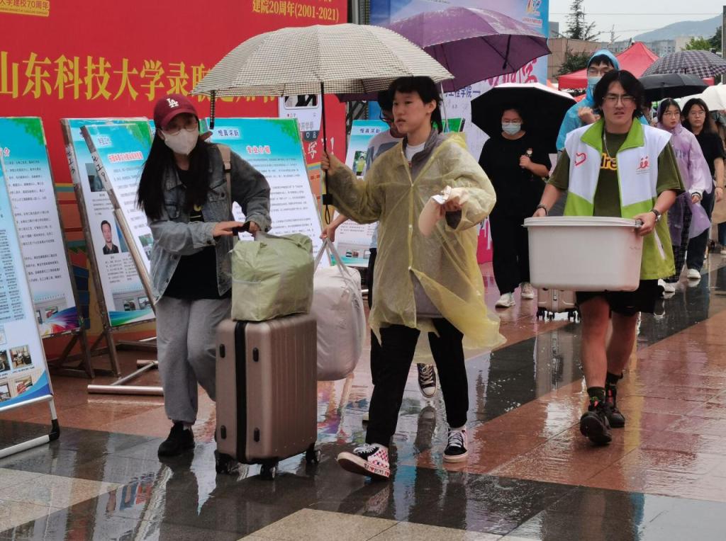 雨越下越大,行人拥堵、新生众多,但我院师生不怕秋雨淋打、不惧秋风瑟瑟。志愿者们耐心地引领新生登记报到,在风雨之中为安全学院助力添彩。你好,请在前方登记报到。”“你好学妹,我们来帮你拿行李。......在下雨天,我们更需要帮助学弟学妹搬运行李,同时也要为老师们排忧解难,维护好入学秩序。在交谈中学院学生会主席孙坤说。