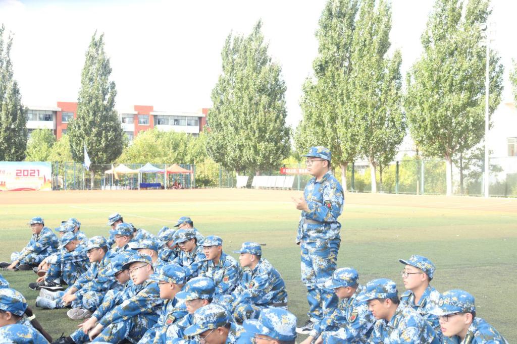 在短短的几天里,齐步走、跑步走、齐步立定、四面转法、解散集合等科目初见成效。训练休息间隙,教官们带领着新生同学们学唱军歌,一瞬间,同学们的疲倦烟消云散,尽情地释放着青春力量。